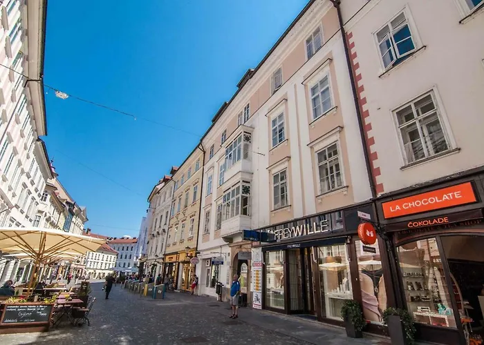 Elegant Central Apartment リュブリャナはプレシェーレン広場とフランシスコ会の受胎告知教会から歩いてわずか5分に位置し、都市の景色を望めます。 テラスを提供するアパートは市内の中心に位置しています。